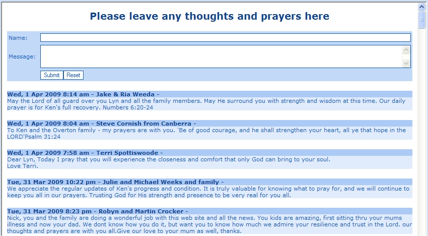 iCareUpdates sheets or labels are available so that family, friends or medical staff can easily print this unique web address to handout.